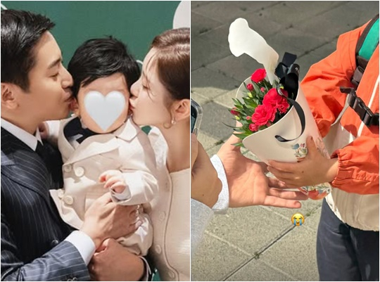나혜미는 11일 자신의 개인계정에 사진을 게재했다. 공개된 사진 속에는 고사리 같은 손으로 엄마 아빠에게 카네이션을 건네는 첫째 아들의 모습이 담겨 있다.