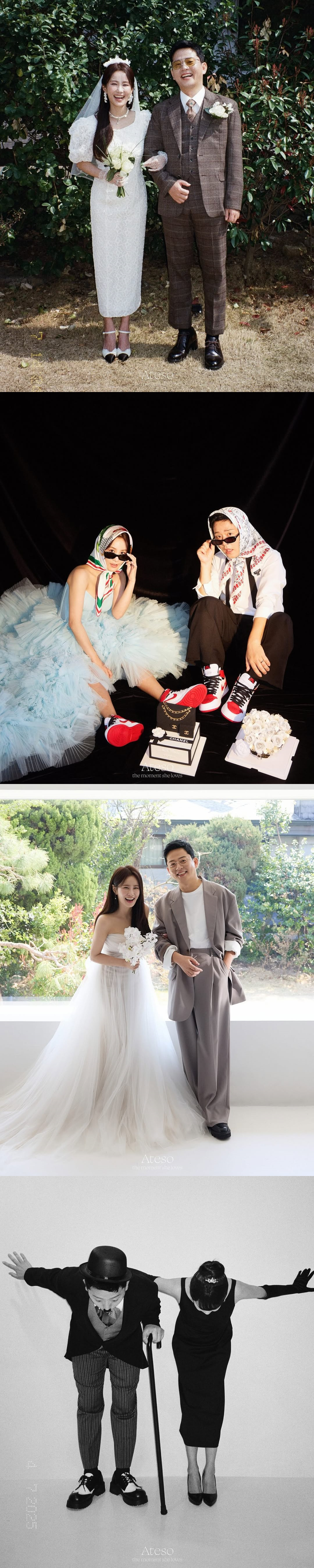 공개된 사진 속에는 김준호와 김지민의 웨딩 사진이 담겼다. 김준호는 찰리 채플린, 김지민은 오드리 헵번으로 변신하는가 하면 두 사람은 여러 콘셉트로 사진을 찍으며 결혼을 앞둔 설렘을 표현했다.