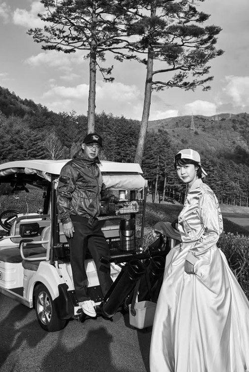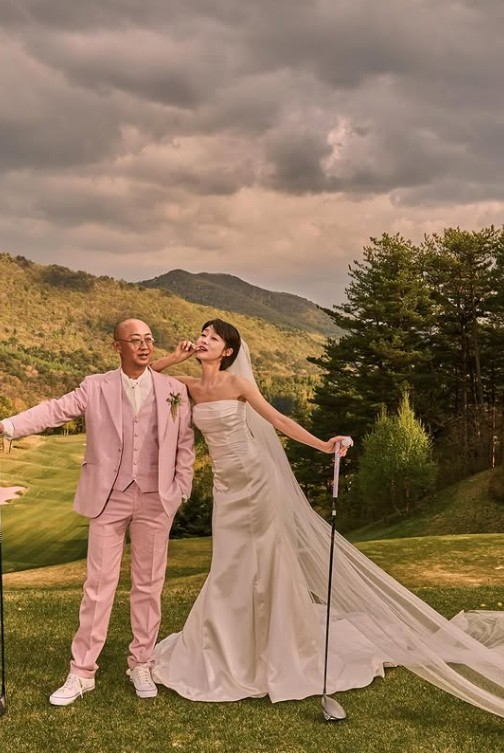 또한 레저를 즐기는 커플답게 골프장에서 개성을 살린 웨딩 화보 촬영을 진행해 눈길을 끌었다. 특히 최여진은 모델 출신답게 늘씬한 몸매와 큰 키로 의상을 소화해 눈길을 끌었다.