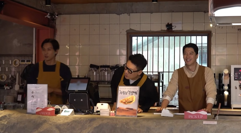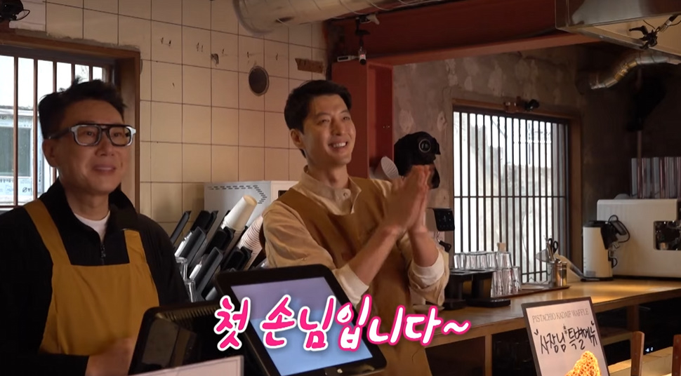 이동건은 이상민 구본승과 함께 오픈 첫날 손님을 맞이하며 분주한 모습을 보였다.