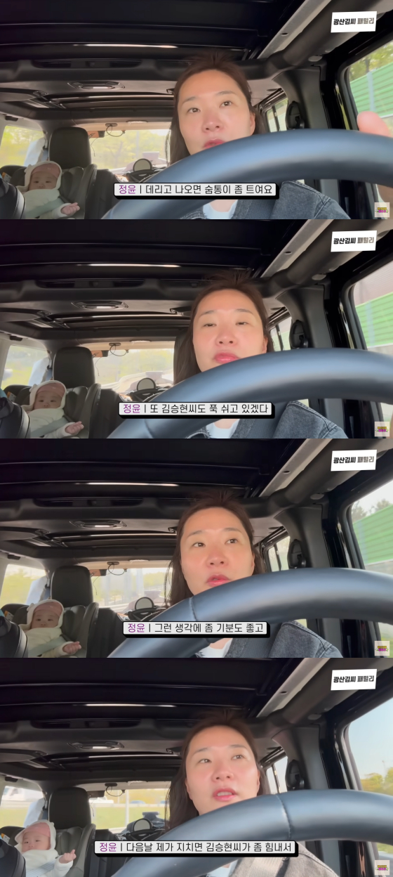 공개된 영상에서 장정윤은 이른 오전 딸 리윤을 데리고 친정으로 향했다. 김승현에게 휴식 시간을 주기 위한 것.