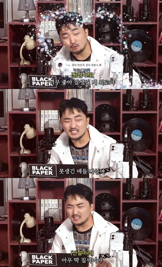 솔직한 사연자의 발언에 잠시 머뭇거리던 그는 다시 공감하려 노력하며 "잘생긴 게 솔직히 최고다. 못생긴 애들 솔직히 딱 질색이다. 나는 별로더라"라고 했다.