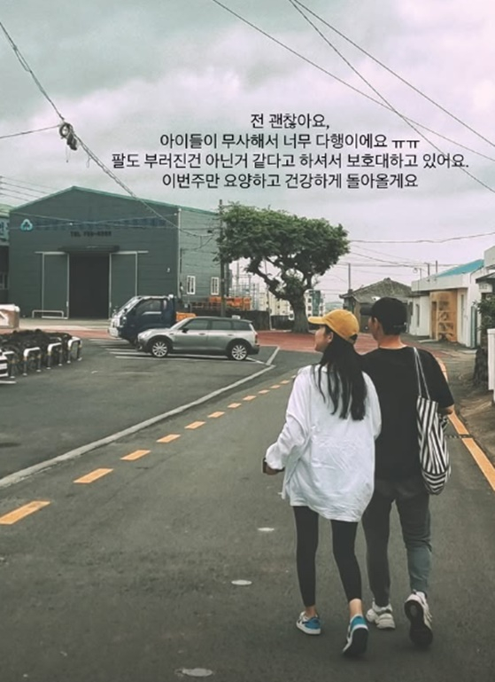 김지혜는 "팔도 부러진 건 아닌것 같다고 하셔서 보호대 하고 있어요"라며 "이번주만 요양하고 건강하게 돌아올게요"라고 알렸다.