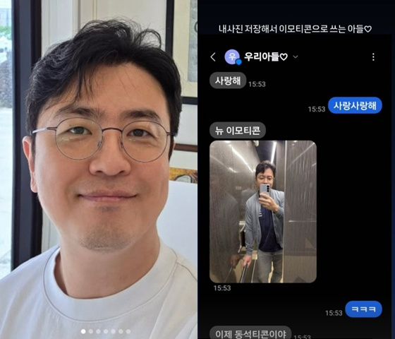 최동석은 13일 개인 SNS 계정에 "내 사진 저장해서 이모티콘으로 쓰는 아들"이라며 아들과 주고받은 메시지 내용을 공개했다.