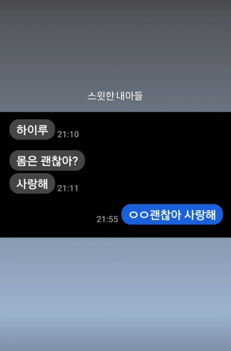 또 최동석은 아들이 "몸은 괜찮아?", "사랑해"라고 메시지를 보낸 내용을 캡처해 "스윗한 내 아들"이라고 자랑했다.