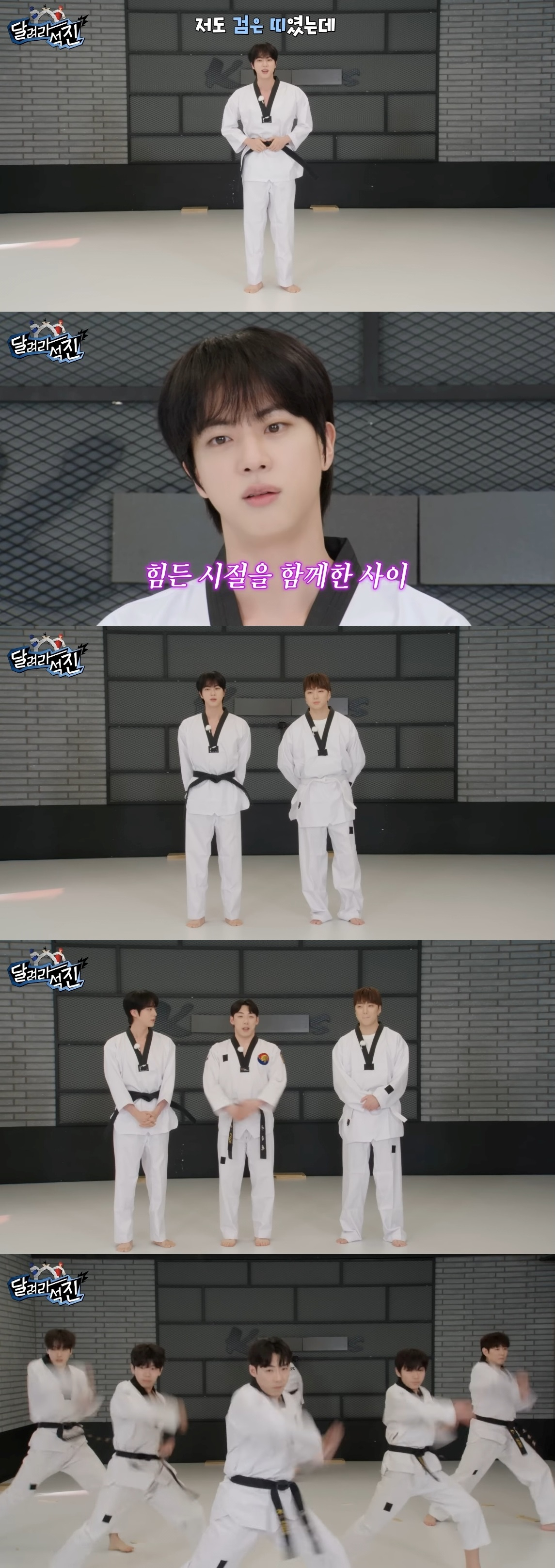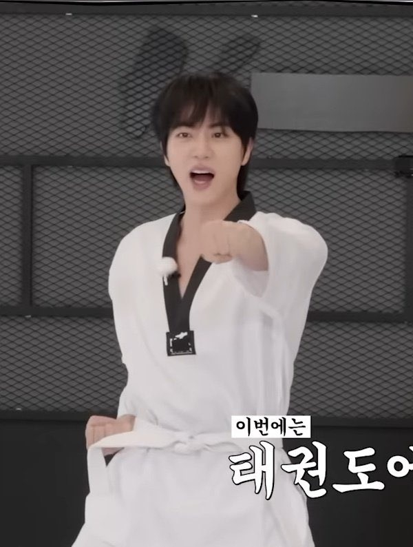 지난 13일 유튜브와 위버스 방탄소년단 공식 채널에는 진의 자체 콘텐츠인 '[달려라 석진] EP.34 | 달려라 태권!' 영상이 공개됐다. 진은 태권도 도복을 입고 등장, 설레는 미의 남신 비주얼로 보는 이들의 감탄을 불러 일으켰다. 진은 대한민국 남학생은 거의 모두 태권도를 다녔다며, 어릴 때 검은띠를 땄는데 제작진이 흰띄를 주길래 흰띠는 도저히 못 찬다고 말하고 검은띠를 받았다며 미소지었다.