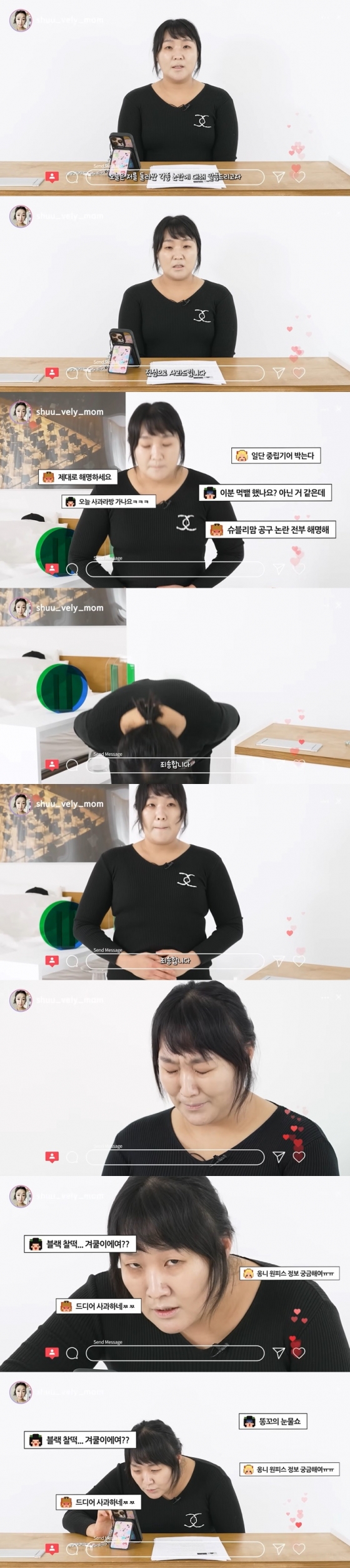 이수지는 검은 옷을 입고 창백한 얼굴로 "저를 둘러싼 각종 논란에 대해 말씀드리고자 라방을 켰다. 진심으로 사과드린다"라며 90도로 고개를 숙이고 "여러 가지 오해가 있었지만 일일이 대응하지 않는 게 낫다고 생각했다 하지만 각종 루머와 추측이 난무하고 사랑하는 사람들까지 피해를 입게 되면서 더는 침묵할 수 없다고 생각했다. 오해는 사과드리고 싶어서 사실과 다른 부분을 다시 잡고 가고자 한다"고 말했다.