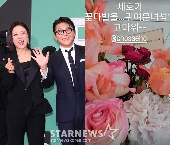 김숙은 14일 자신의 계정에 "세호가 꽃다발을... 귀여운 녀석 고마워~~"라며 사진을 올렸다.