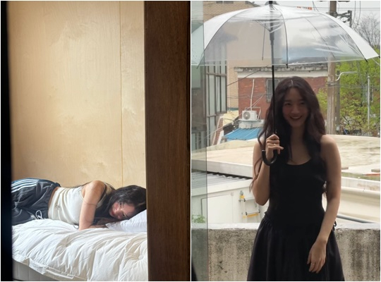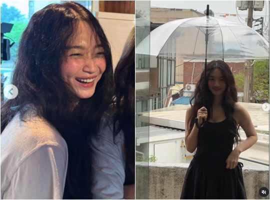 14일 신민아는 자신의 개인계정에 촬영현장에서 찍은 사진과 영상을 게재했다. 헤어와 메이크업을 한 신민아는 소매없는 블랙 드레스를 입고 우산을 쓰고 포즈를 취하고 있다.