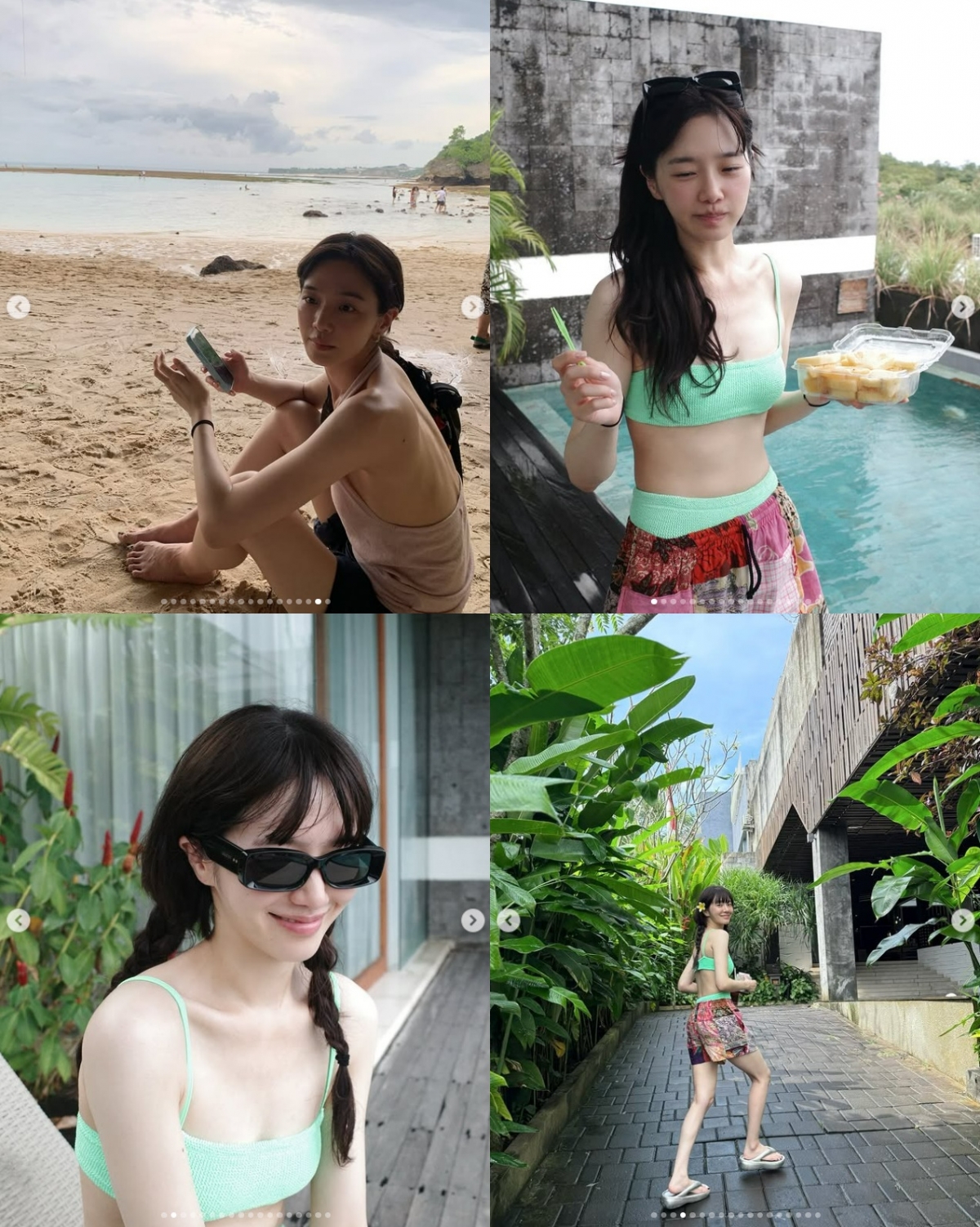 사진 속 박규영은 해변이 한눈에 보이는 휴양지에서 여유로운 시간을 즐기고 있는 모습. 그는 연두색 수영복에 선글라스로 포인트를 주면서 센스있는 패션도 놓치지 않았다.