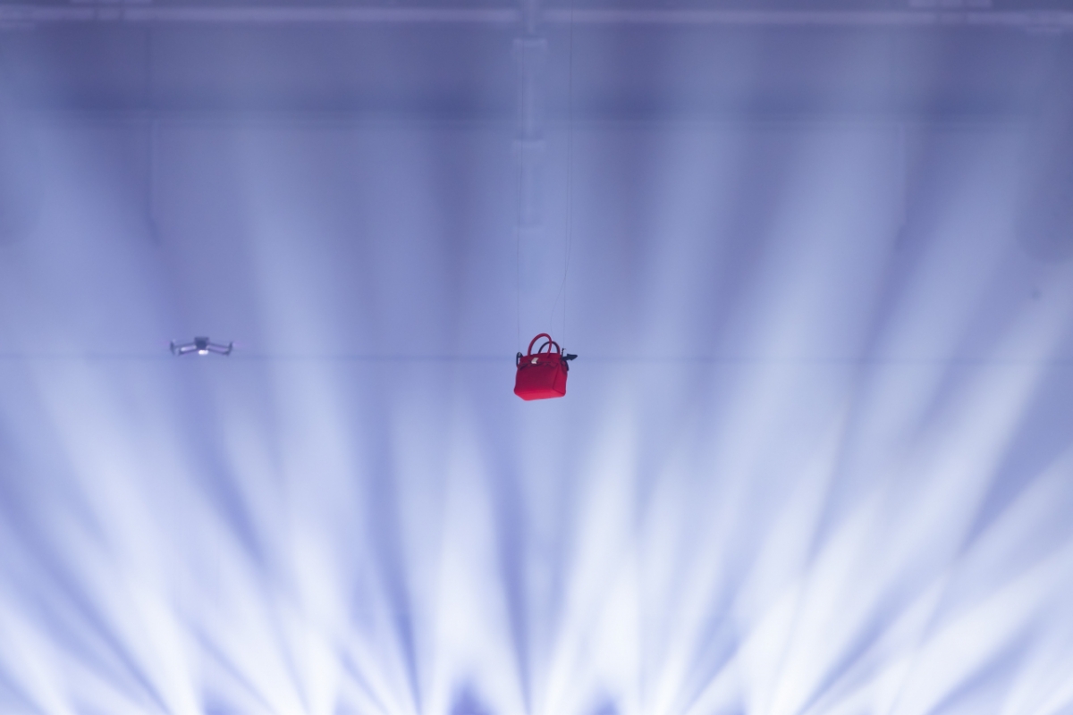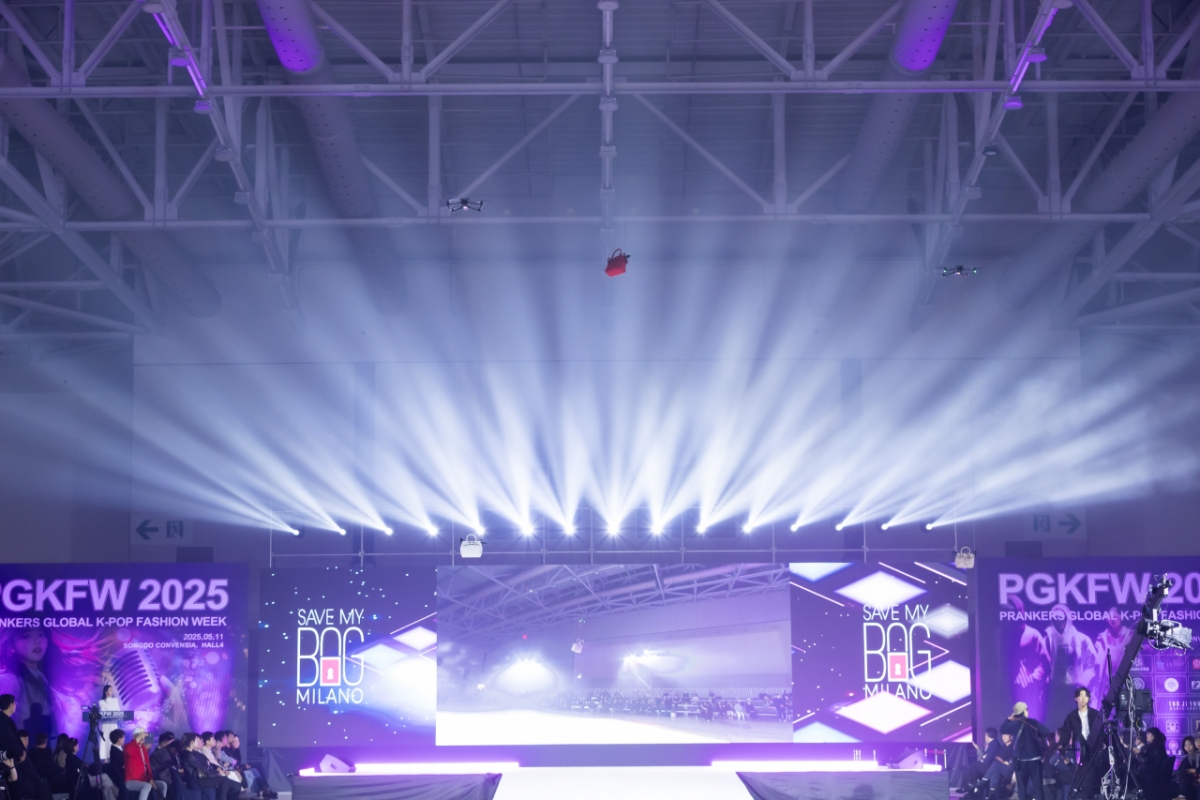 다양한 글로벌 브랜드들의 화려한 쇼 가운데 단연 돋보인 것은 드론으로 공중에 가방을 워킹 시킨 PK헤만의 순서였다.