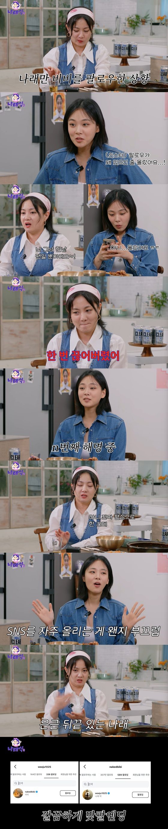 다만 박나래는 "'놀토'에서 그러면 안 되는데 쉬는시간에 한 번 얘기를 했다. 근데 (비비가 안 해줘서) '언니 이제 안 좋아할 거야' 하며 너무 유치하게 중간에 한 번 끊어버렸다. 그러고 너무 유치한 거 같아 다시 팔로우했다"라고 털어놨다.