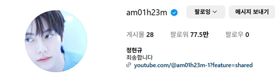 지난 14일 정현규의 인스타그램 프로필에 "죄송합니다"라는 글이 올라왔다