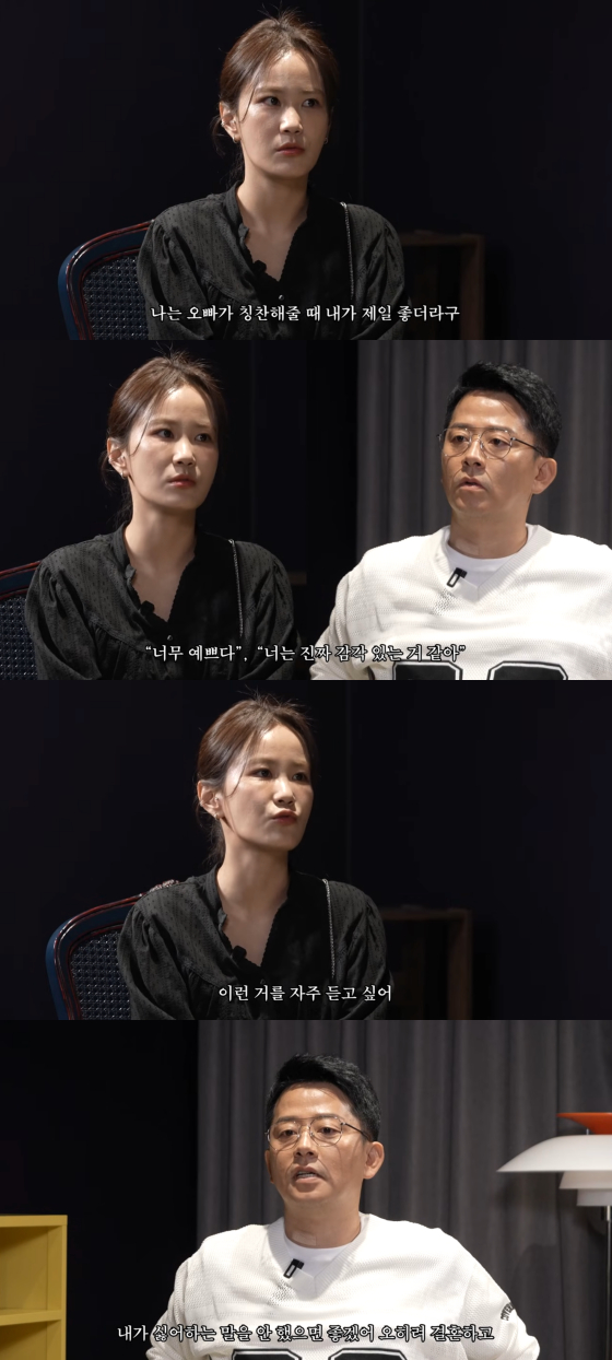 우선 김지민은 "나는 오빠(김준호)가 칭찬할 때 가장 좋다. 이번에 신혼집 인테리어 했을 때도 '너는 정말 감각이 있는 것 같다. 너무 예쁘다'고 해주니까 좋더라"고 답했다.