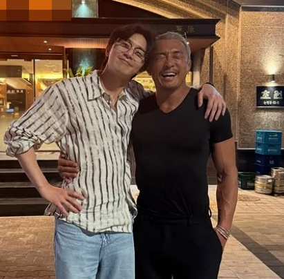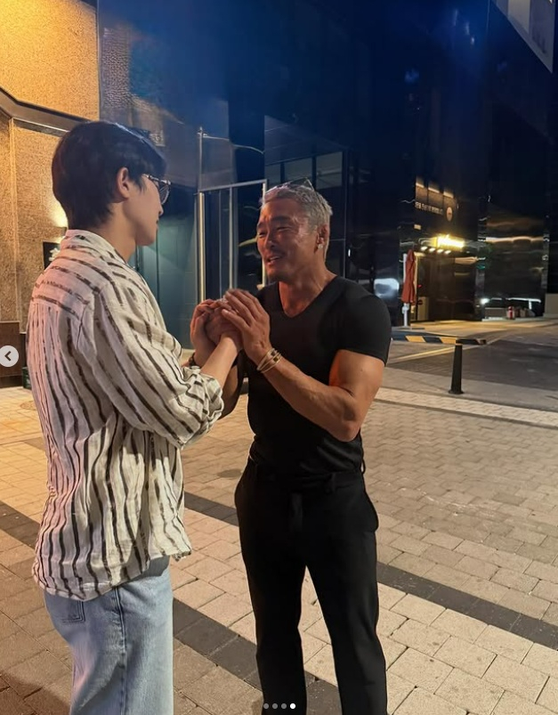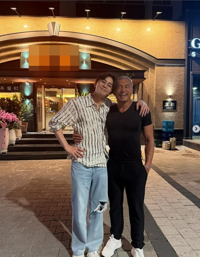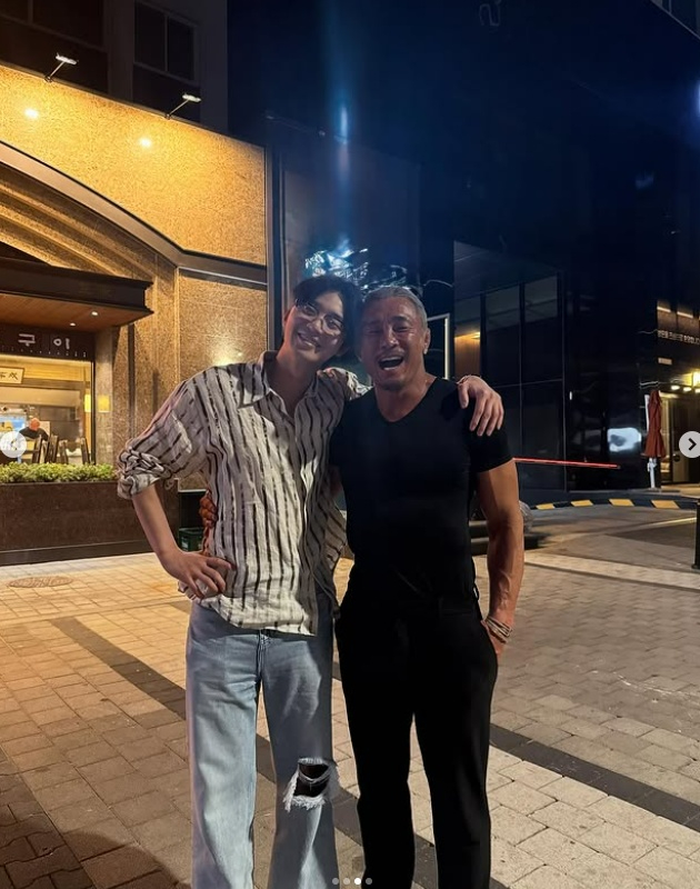 사진 속엔 추성훈이 한 식당 앞에서 박서준과 우연히 만나 반가워하는 모습이 있었다.