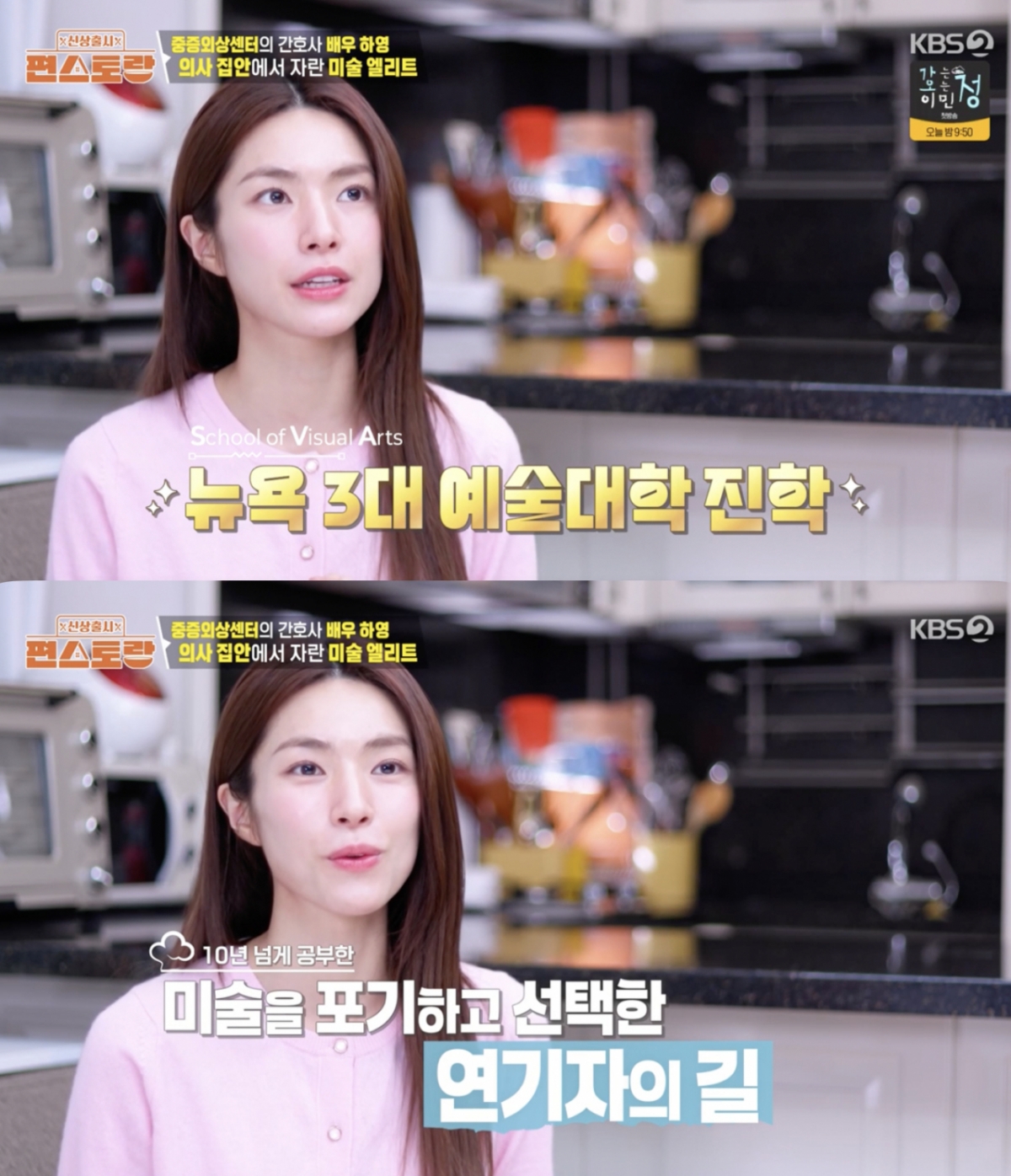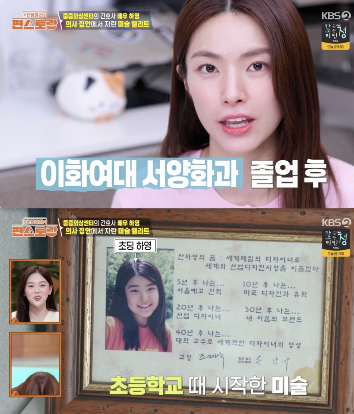 하영은 "어릴 때부터 미술을 오래 했다. 예술 중학교와 예술 고등학교를 다니고, 이화여대 서양화과를 졸업했다"고 밝혔다.