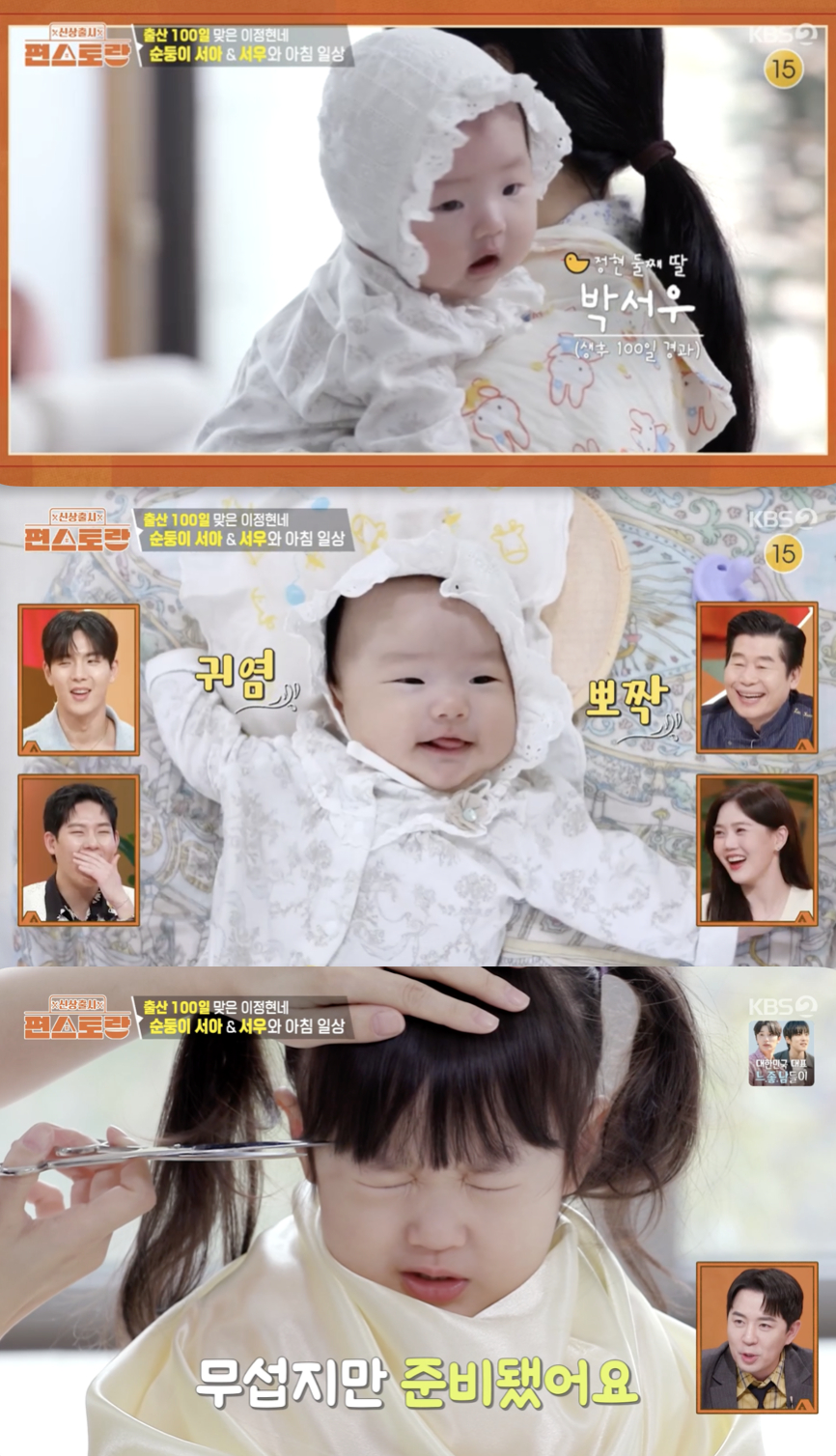 공개된 VCR 속 이정현은 둘째 서우를 재운 뒤, 첫째 딸 서아와 단란한 시간을 보냈다. 서아의 앞머리가 눈을 찌르기 직전이자, 이정현은 앞머리를 잘라주고자 했다.