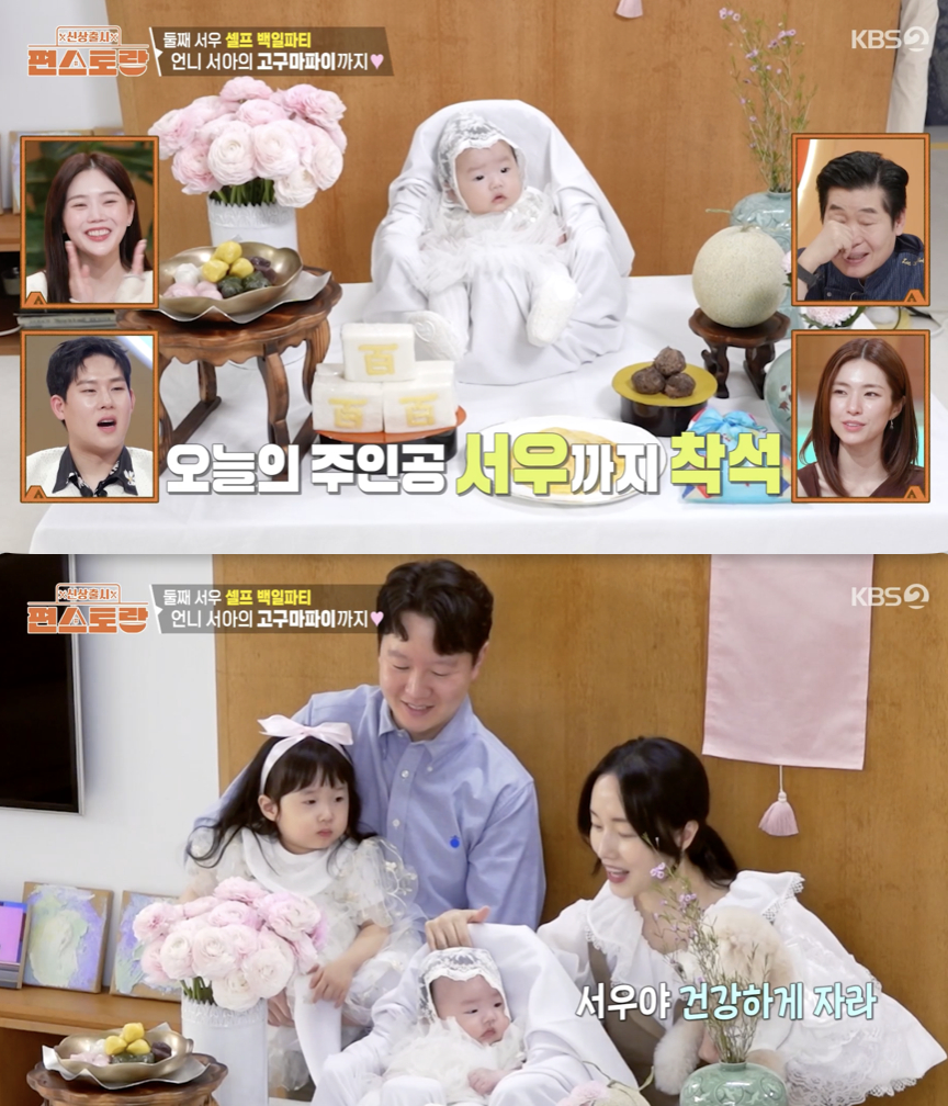 이어 이정현은 "서우(둘째) 잘 잔다. 서우 자니까 편해졌다"라며 "엄마 이제 서우 백일 파티 준비할 거야"라고 말하며 본격적인 준비에 나섰다. '편스토랑'을 통해 임신 소식을 알렸던 둘째 서우가 어느덧 백일을 맞은 것. 이정현은 첫째 서아의 백일 때 사용했던 소품들을 꺼내와 둘째 서우도 직접 백일상을 차렸다.