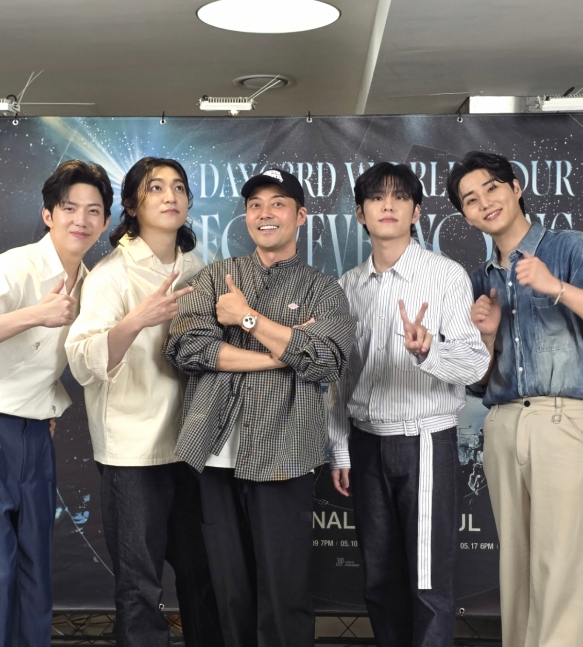공개된 사진에는 전현무가 데이식스의 슬로건 피켓을 들고 객석에서 공연을 즐기는 모습이 담겼다. 또 다른 사진에서는 멤버들과 함께 엄지척 포즈를 취하며 훈훈한 비하인드 컷을 남겼다.