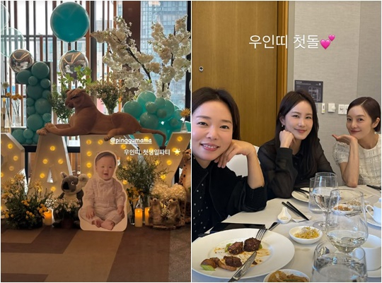 공개된 사진 속에느 특급 호텔에서 돌잔치를 하는 모습이 담겨있다. 아기의 돌을 맞아 준비한 장식과 함께, 귀여운 아기의 모습이 시선을 사로잡는다.