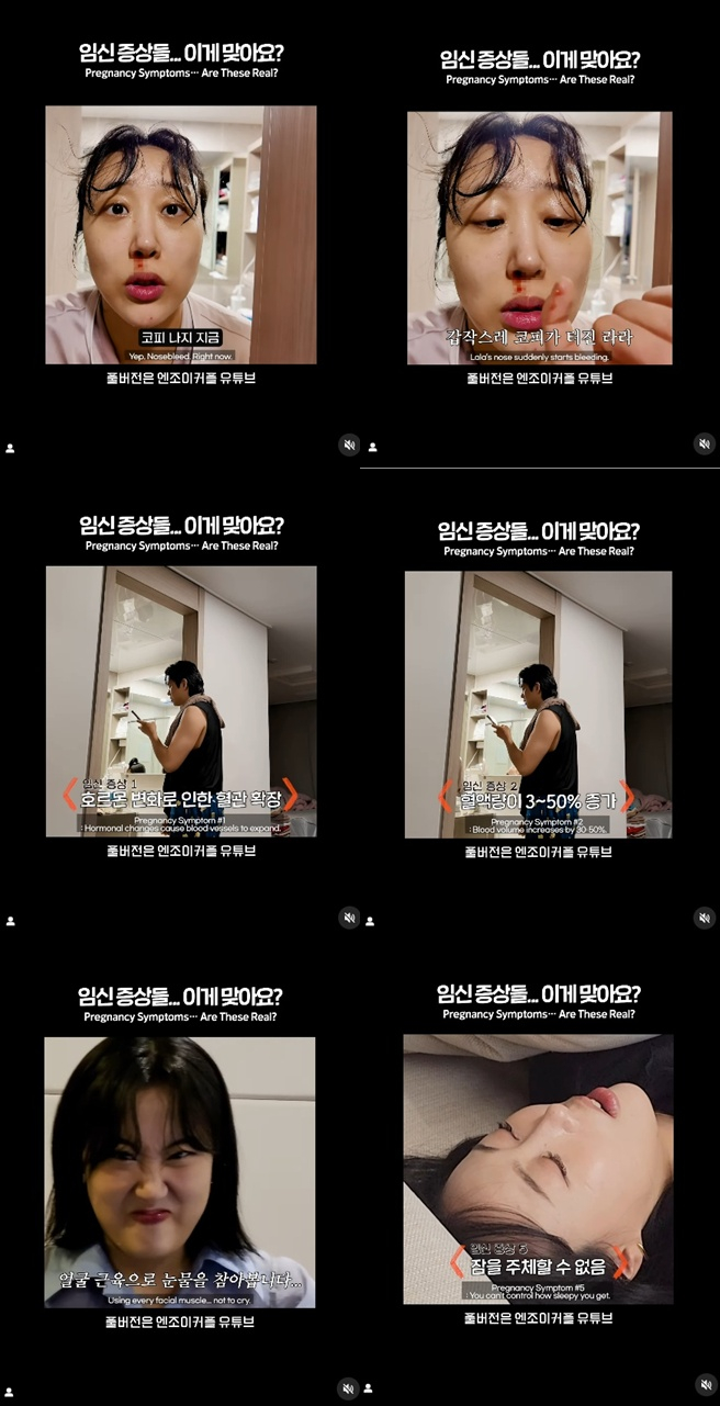 임라라, 손민수 부부는 19일 SNS에 "임신초 증상 제일 난이도 높은게 뭔가요?"라는 글과 함께 영상을 게재했다.