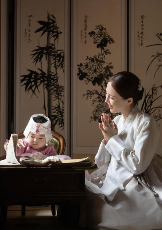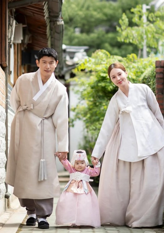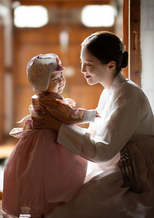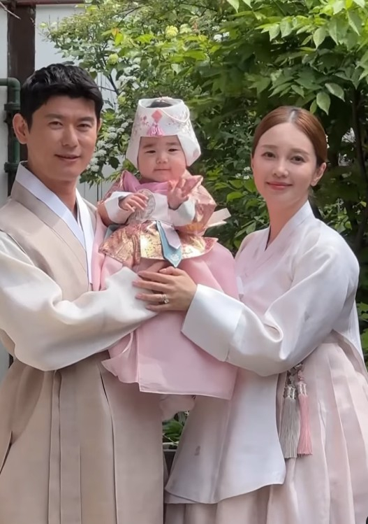 게재된 사진에는 아유미와 남편, 딸이 한복을 차려 입고 돌 기념 촬영에 임하는 모습이 담겼다. 사진 속 아유미는 사랑스러운 눈빛으로 딸을 바라보며 행복해하고 있다.