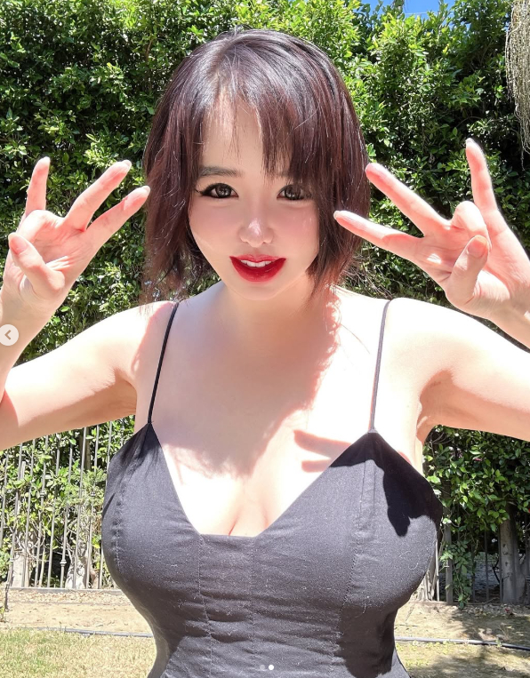 박봄은 단발 헤어스타일과 함께 시원해보이는 민소매 상의를 입고 미소를 지었다.