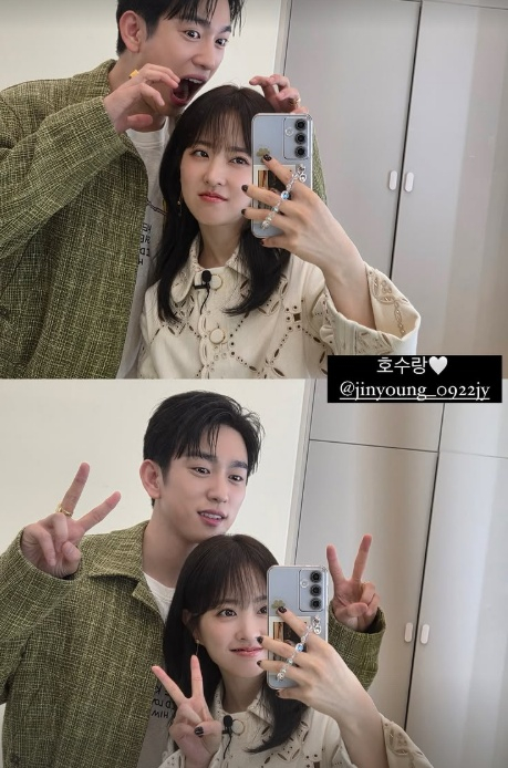 박진영 역시 자신의 계정에 "미지의 서울♥♥"이라며 박보영의 얼굴에 양손을 올리고 장난친 사진을 공개했다.