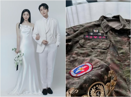 하지만 함께 공개한 사진 속에는 고우림의 군복이 담겼는데 오른쪽 가슴 위 '우림♥연아'라는 글이 있어 눈길을 끈다. 가슴에 새긴 연아라는 이름 두 글자에 애정이 느껴진다.