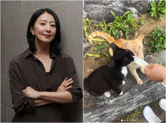 김희애는 21일 자신의 개인계정에 "요즘 한강에서 자주 만나는 고양이 형제들. 혹시나 또 만날까 간식을 챙겨 갔는데 맛있게 먹어 좋네요"라는 글과 사진을 게재했다.