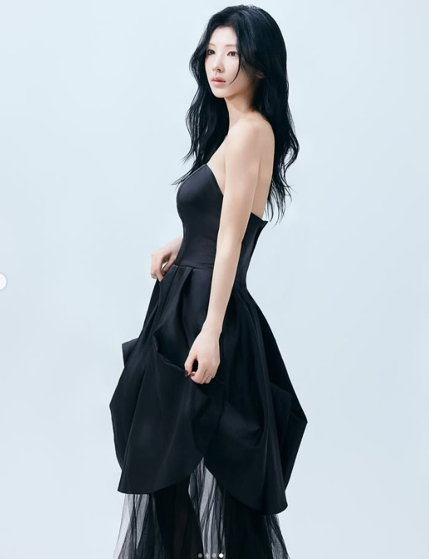 사진 속 강다은은 블랙 드레스를 입고 고혹적인 자태를 과시했다.