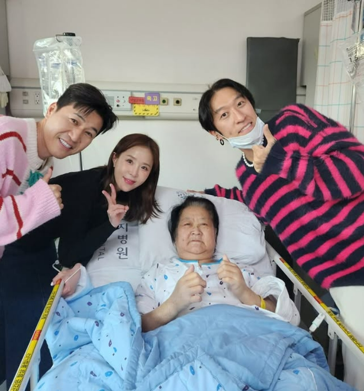 지난 22일 신지는 개인 SNS에 "어머니와의 병실 사진을 빽가 아버지께서 보내주셨어요"라며 빽가, 빽가의 모친, 김종민과 함께 찍은 셀카 한 장을 게재했다.