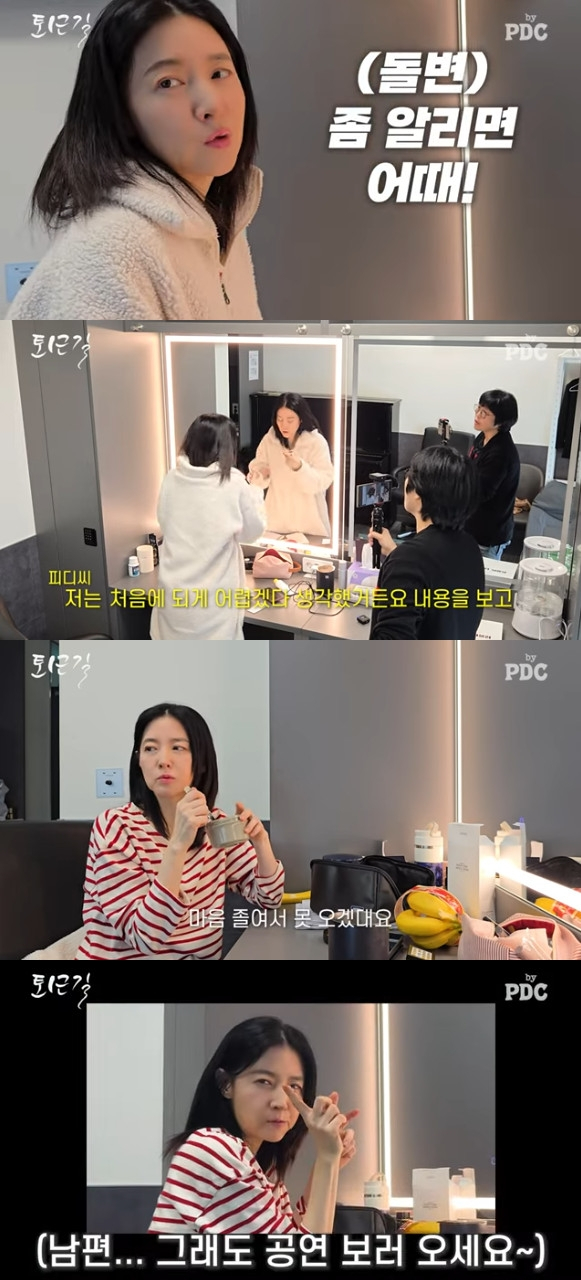 이어 공연을 앞두고 바나나와 집에서 직접 만든 계란찜과 죽을 먹은 이영애는 "공연하기 3~4시간 전에는 안 먹는다. 무거운 것보다는 속에 편한 거 조금씩 먹는다"고 전했다.