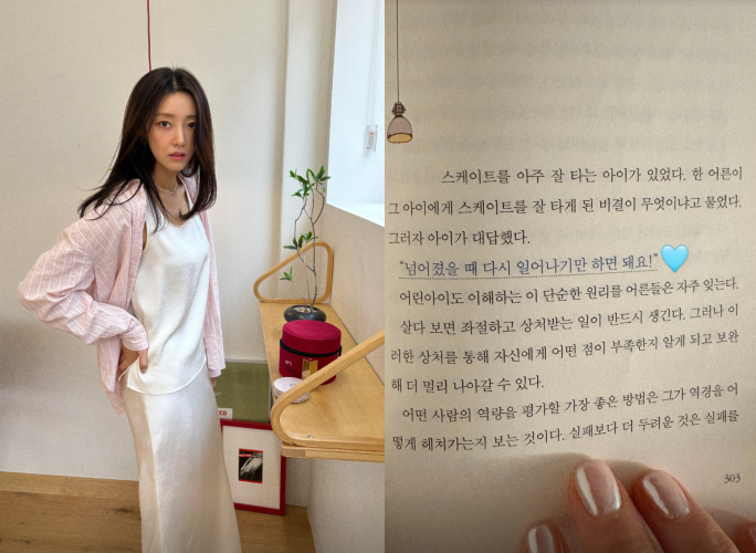 서하얀은 23일 한 책에 쓰여진 문구를 공개했다.