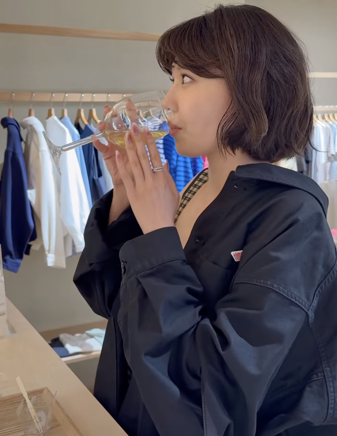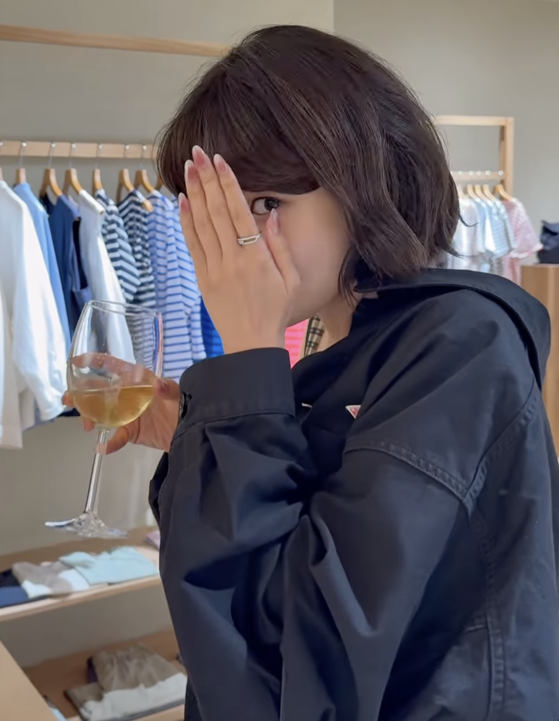디저트와 와인을 즐기며 카메라 앞에서 다양한 포즈를 취하는 그의 모습이 시선을 사로 잡는다. 특히 와인잔을 들고 수줍게 미소 지으며 카메라를 '빼꼼' 바라보는 장면은 오랜 연인인 배우 정경호와의 데이트 현장을 연상케 할 만큼 사랑스럽다.