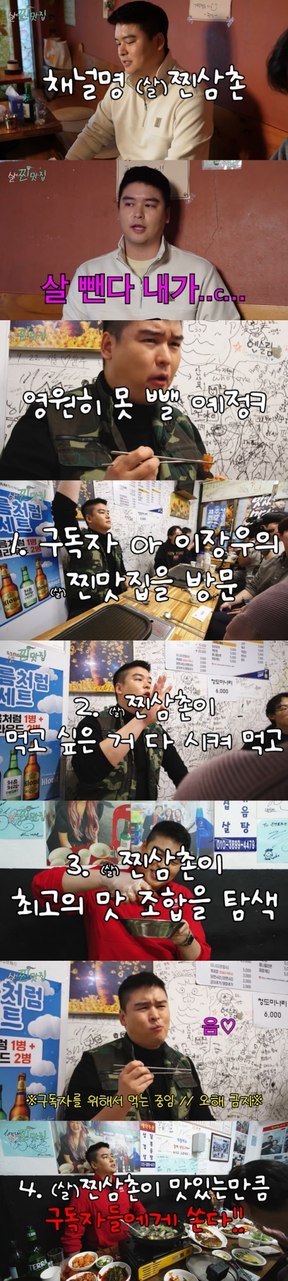 이장우는지난 23일 유튜브 채널 '(살)찐삼촌'에서 "신촌 (찐)맛집 이장우가 쏩니다"라는 제목의 첫 영상을 게재하고 "구독자 혹은 이장우의 찐맛집을 방문하고, (살)찐삼촌이 먹고 싶은 거 다 시켜 먹고 최고의 맛 조합을 탄생시킨다. (살)찐삼촌이 맛있는만큼 구독자에게 밥을 쏜다"라고 소개했다.
