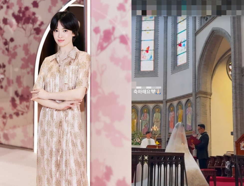 배우 송혜교가 성당 결혼식에서의 근황으로 제대로 민폐하객 포스를 전했다.