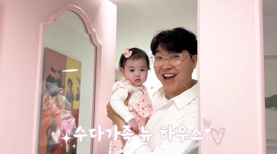 박수홍 부부는 23일 유튜브 채널 '박수홍 행복해다홍'에서 7개월 딸을 위해 초호화 리모델링을 완성한 랜선 집들이에 나섰다.