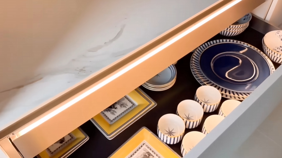 특히 박수홍은 "주방을 이탈리아 하이엔드 주방가구 브랜드로 꾸몄다"라며 이탈리아 화가의 작품과 컬래버한 디자인 수납장과 화려한 조명도 소개했다.
