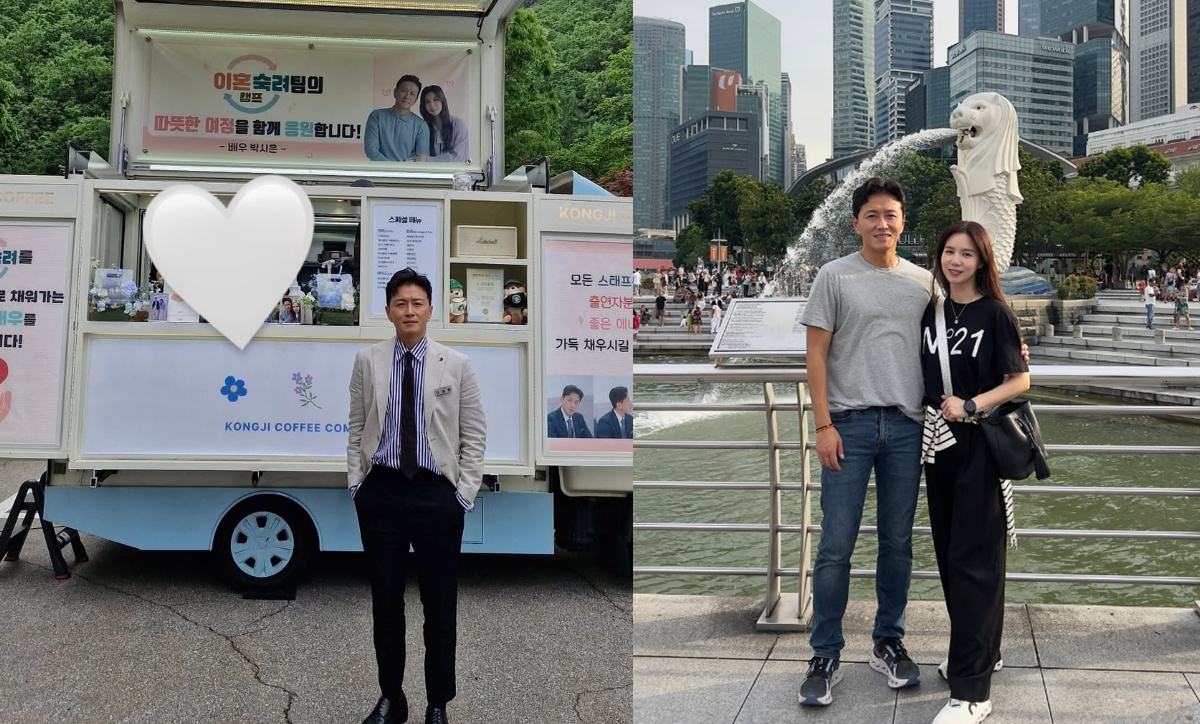 진태현은 24일 "사랑하는 아내가 커피차를 보내줬어요 박시은 포레버!! 감사합니다!!"라는 글과 함께 커피차 인증샷을 공개했다.