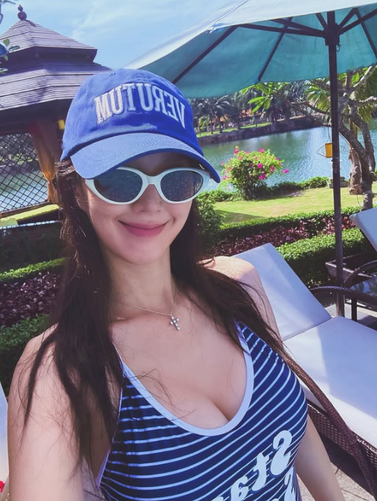 사진 속 지소연은 수영복을 입고 아름다운 D라인을 뽐내고 있다.