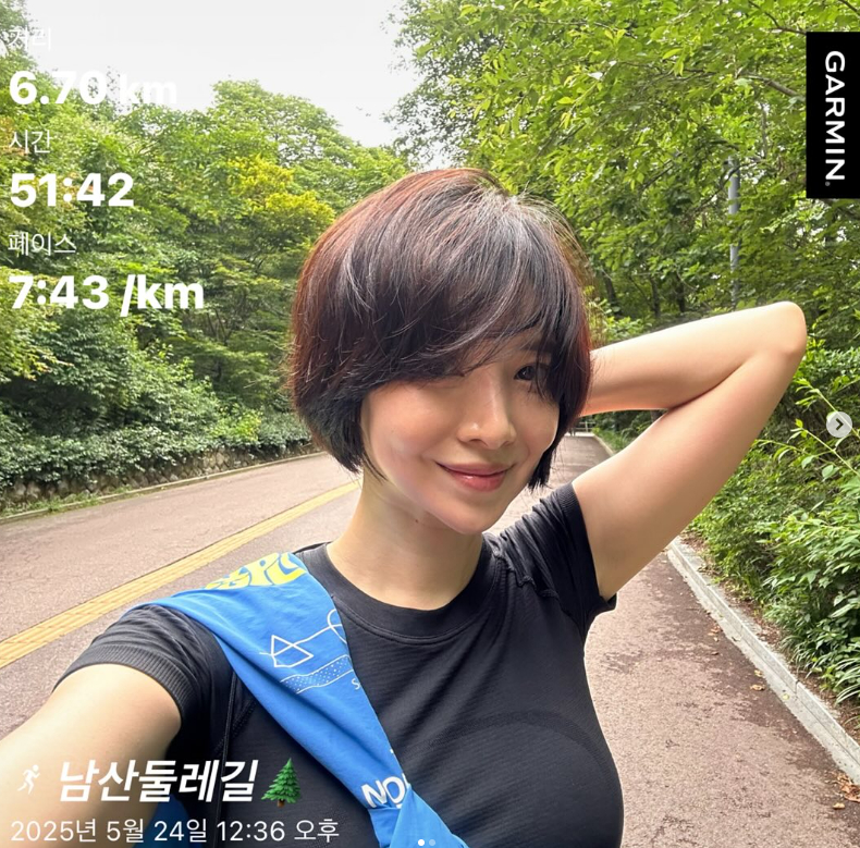 배우 윤세아가 남산둘레길 6.7km 코스 완주 인증샷을 공개했다.