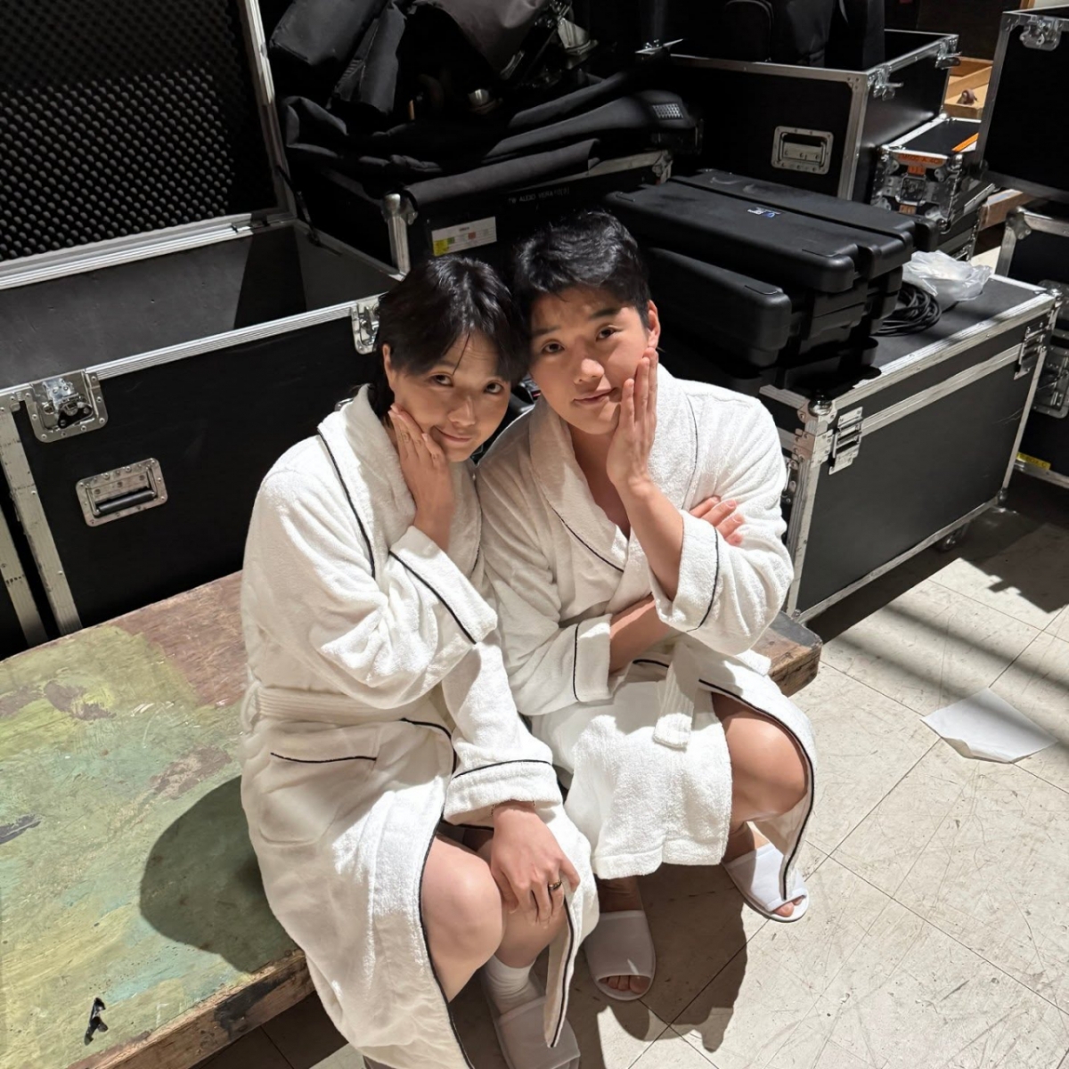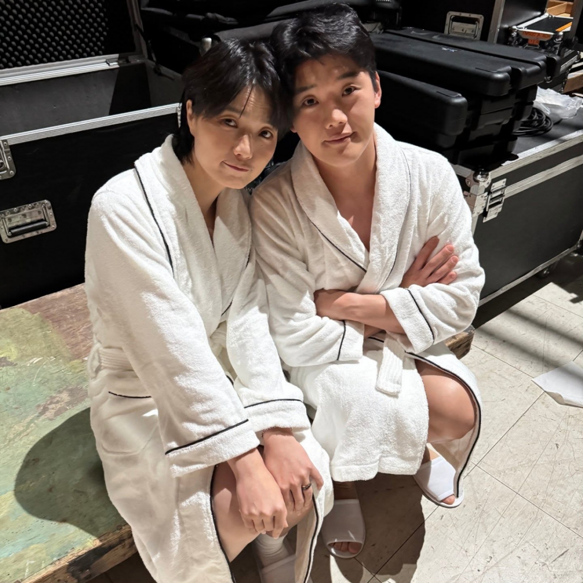 사진 속 안영미는 권혁수와 '커플' 샤워가운을 입은 채 다정하게 꼭 붙어 앉아 있는 모습. 또한 두 사람은 나란히 꽃받침 포즈를 취하며 훈훈한 선후배 케미를 발산했다.