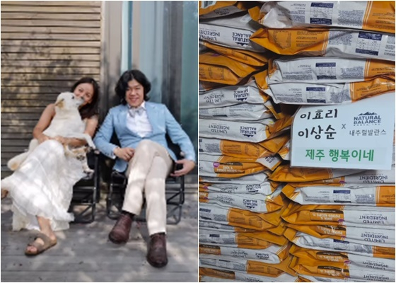 이에 따르면 이효리와 이상순 부부는 한 사료 브랜드의 5kg 사료를 저주의 각 유기동물 보호소에 150포대씩, 총 600포대 기부했다. 무게로 따지만 3000kg, 3톤이나 되는 양이다.