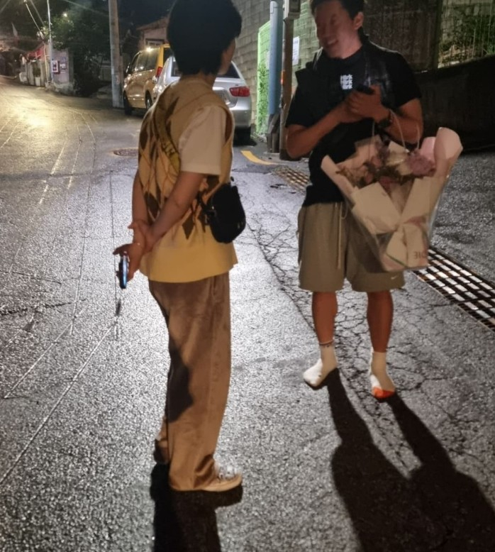특히 눈길을 끈 것은 김대호의 편안한 옷차림이었다. 꽃다발을 든 김대호는 반바지에 신발은 신지 않고, 짝짝이 양말로 밖을 나서 시선을 모았다. 안영미와 길거리에서 대화를 나누고 있는 듯한 그는 자연스럽고 당당한 모습으로 친근한 매력을 발산했다.