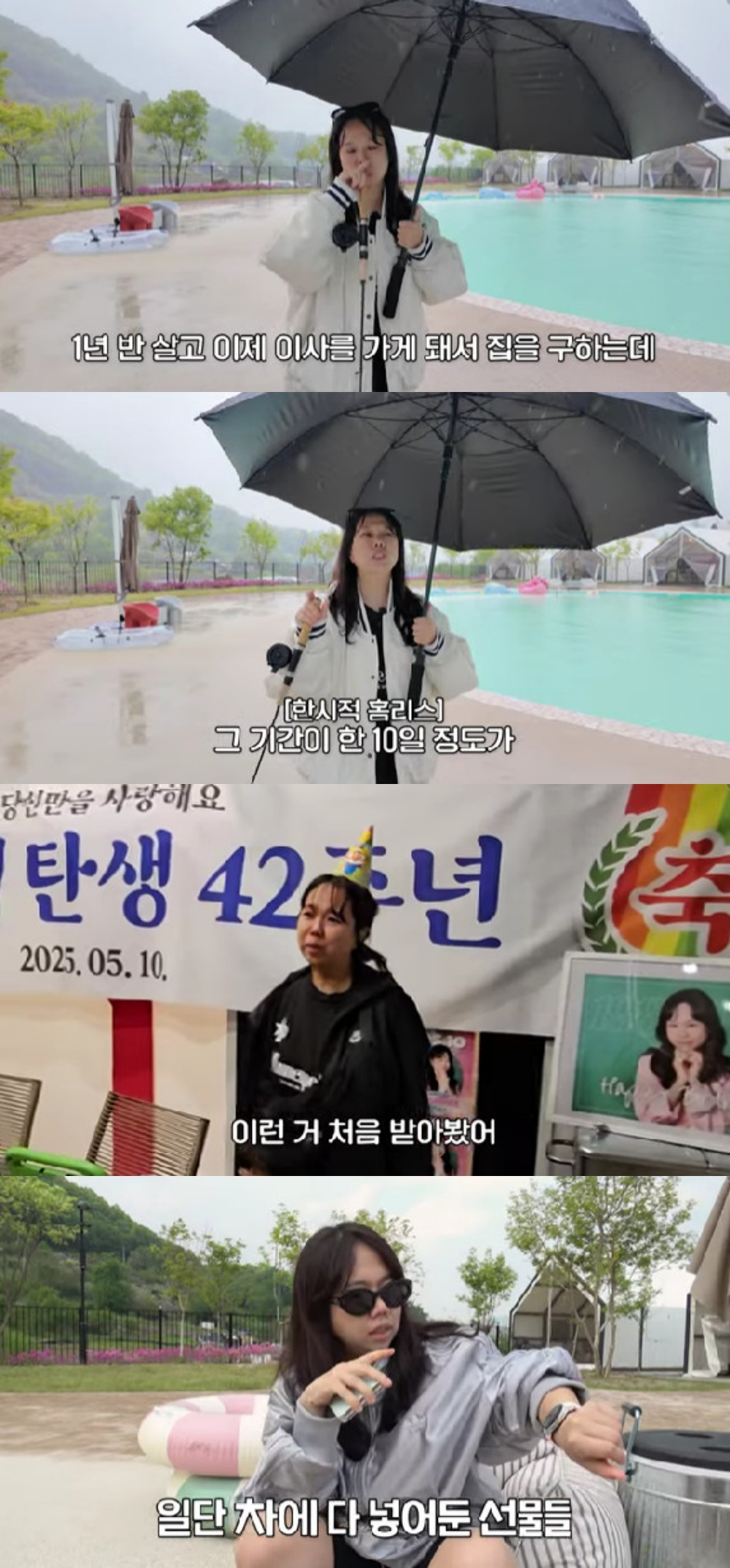 공개된 영상 속 홍현희는 경기도의 한 글램핑장에서 아들 준범이와 시간을 보냈다. 그는 "1년 반 살고 이제 이사를 하게 돼서 집을 구하고 공사를 하고 있다. 한 10일 정도 밖에서 지내야 하는 상황이라 집이 없다. 그래도 아이가 재밌다면 다행"이라고 말했다.