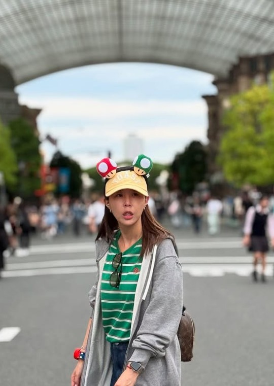 공개된 사진 속 신지는 깜찍한 캐릭터가 달린 머리띠를 착용하고 들뜬 표정을 보이고 있다. 특히 신지는 공항 출국 날 입었던 줄무늬 반소매 티셔츠와 청반바지 차림 그대로 여행을 즐기고 있어 눈길을 끈다.