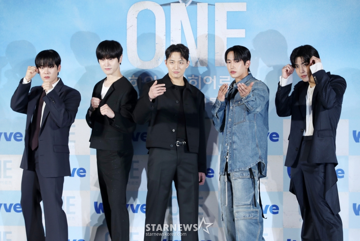 28일 오전 서울 광진구 롯데시네마 건대입구에선 OTT 웨이브 새 오리지널 드라마 '원(ONE) : 하이스쿨 히어로즈'(이하 '원')의 제작발표회가 열렸다. 연출자 이성태 감독과 출연 배우 이정하, 김도완, 김상호, 김주령, 유희제, 육준서, 임성균이 참석했다.