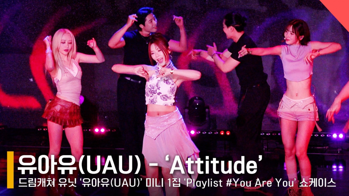 이날 유아유 멤버 지유, 수아, 유현이 타이틀 곡인 'Attitude(애티튜드)' 무대를 선보이고 있다.