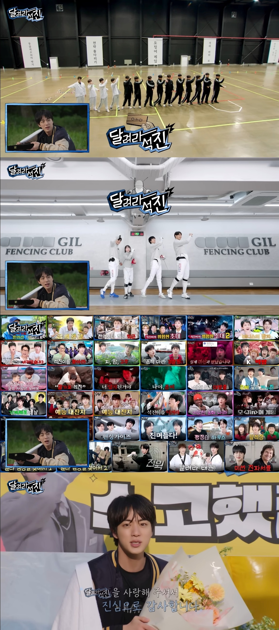 방탄소년단(BTS) 진이 팬사랑으로 가득 채운 '달려라 석진' 마지막 회를 통해 전 세계 팬들에게 뜨거운 감동을 안겼다.
